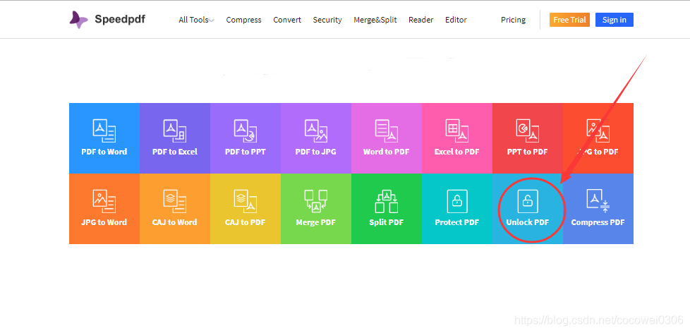 我们能够查找Speedpdf翻开其网页,选择首页热门推荐中的“Unlock PDF”,亲测能够免费试用几个文档,其他格局转化作用也很好。