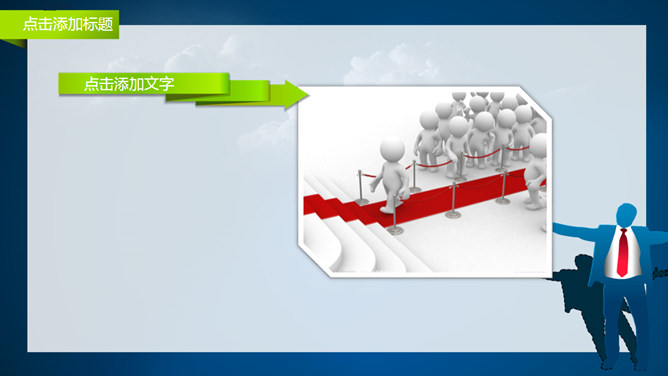 这是一份自我介绍PPT模板,深蓝色主色调,打开双臂的商务人物剪影为首要背景元素,适用于自我介绍、竞聘报告等。运用字体:汉真广标、迷你简汉真广标。