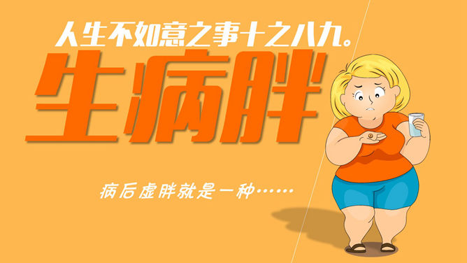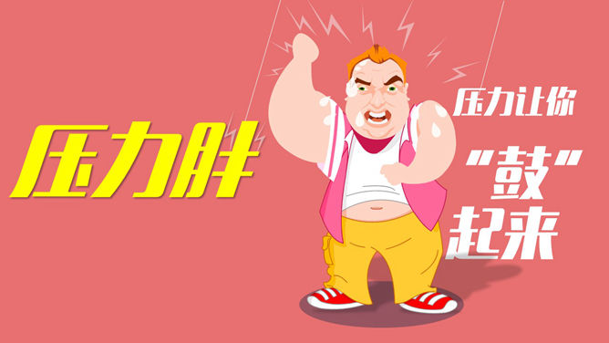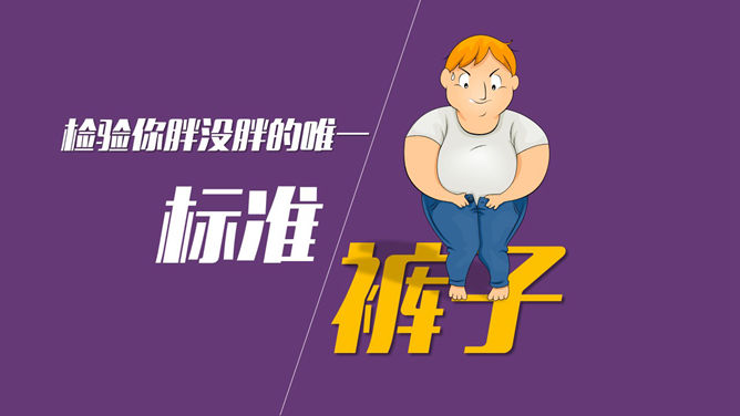 一份肥壮胖子瘦身相关的优异PPT著作,宽屏扁平化设计,卡通风格,漂亮的动态效果,剖析了肥壮成因和瘦身方法。使用字体:Ravie、造字工房朗倩(非商用)粗体、方正卡通简体、金梅美工豆豆字體。