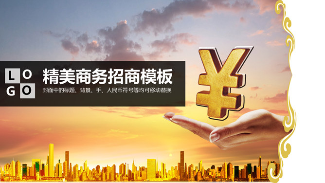 手捧人民币符号金融PPT模板。一套经济金融职业幻灯片模板,手捧人民币符号概念图片背景,合适投资、理财等主题。
