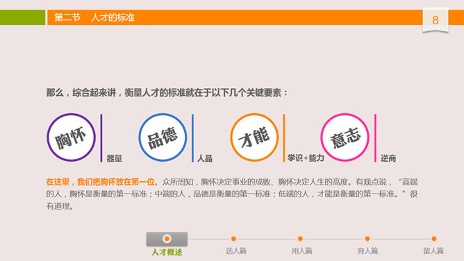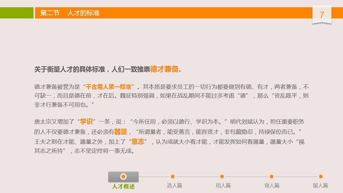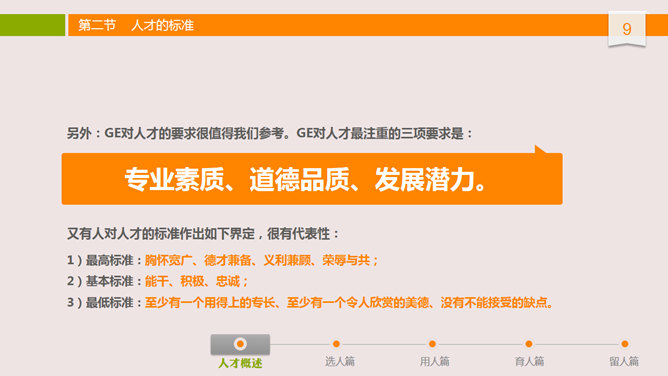 人才选用育留训练PPT课件。布衣公子中高层领导训练系列课件之人才选用预留,内容丰富,非常有用,包含人才概述、选人篇、用人篇、育人篇和留人篇。