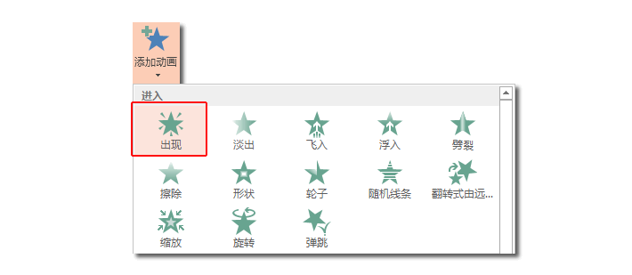 步骤一、选中文本框,点击【动画】-【高档动画】-【增加动画】-【进入】-【出现】。