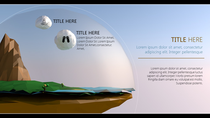 Low Poly风格海岛旅行PPT模板。一套海岛旅行主题幻灯片模板,低面多边形Low Poly规划风格,十分有规划感。