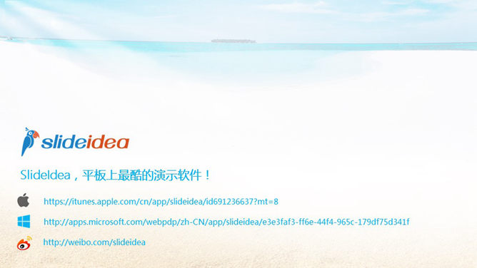 这是一份海边沙滩景色PPT模板,用蓝色的海星装饰,很有浪漫的情调,适合旅行旅行或心情感悟类的主题使用。建议装置字体:Script MT Bold、迷你简卡通。