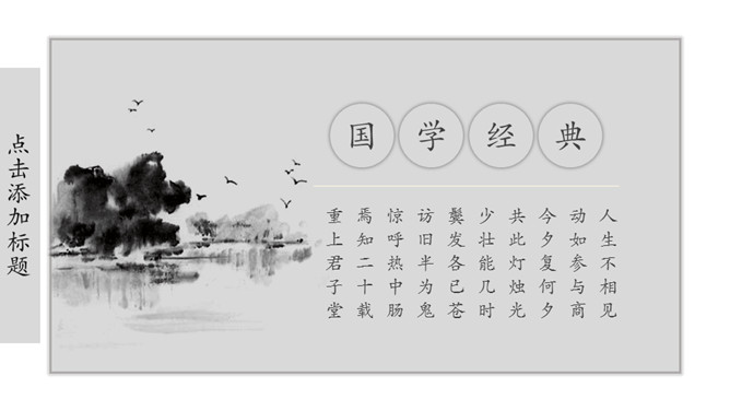 素雅水墨国学中国风PPT模板。一套古典中国风幻灯片模板,素雅黑灰水墨规划,合适国学传统文化相关主题。