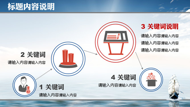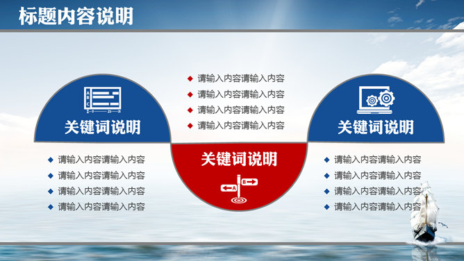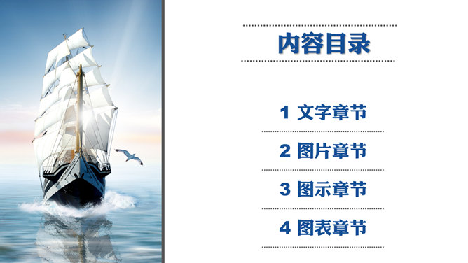 大海帆船披荆斩棘PPT模板。这是一份以帆船在大海中披荆斩棘航行为布景的幻灯片模板,共32页,包括很多的图形图表页,适合勉励、竞聘、报告使用。主张安装字体:华康俪金黑W8。
