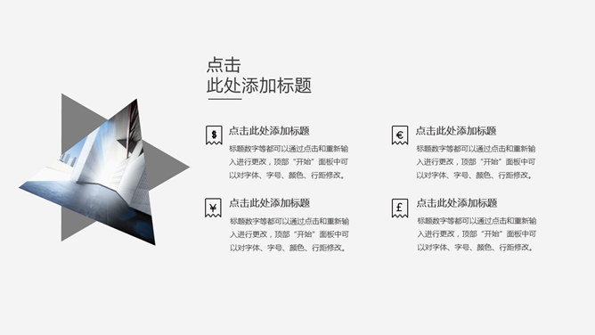 简约素雅构思三角风PPT模板。一套简约通用幻灯片模板,素雅黑白配色,构思三角风设计风格,好看的动态效果。