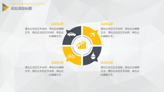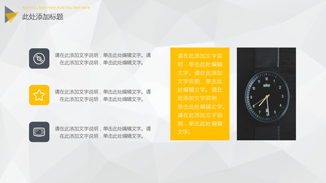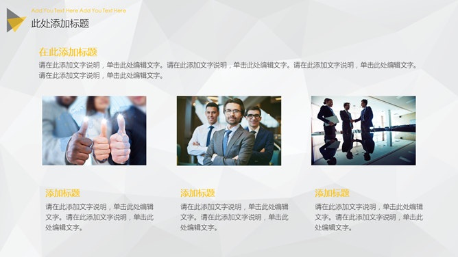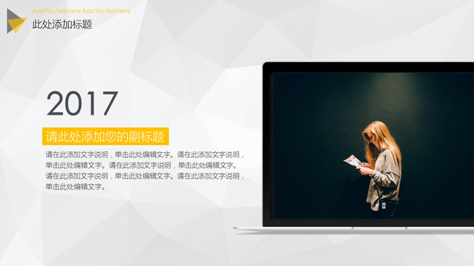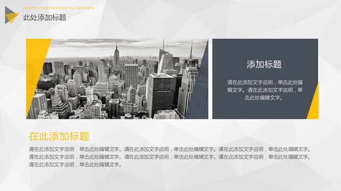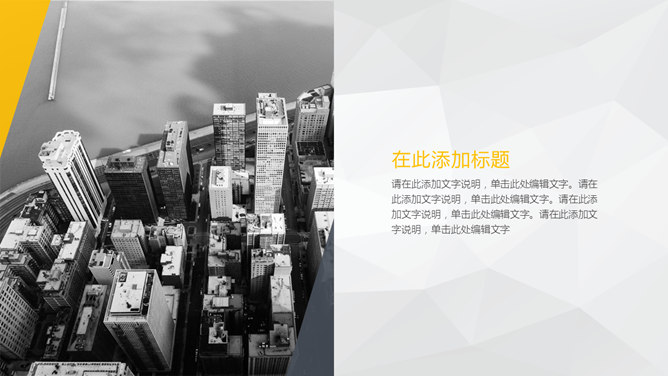 大图背景商务杂志风PPT模板。一套大气商务风格幻灯片模板,大图全图封面背景,黑黄配色,精美时髦。