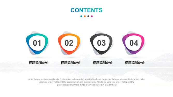 简练时髦突变通用PPT模板。一套简练通用幻灯片模板,不规则形状图形装修,动态播放,时髦突变配色,简练通用。