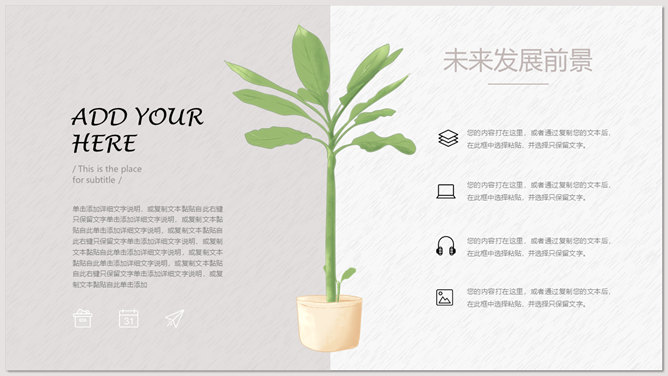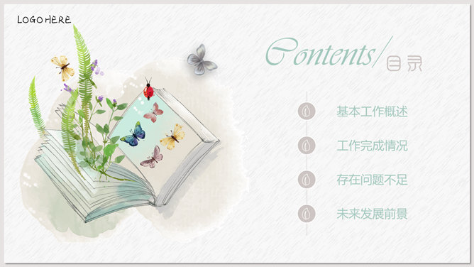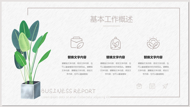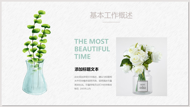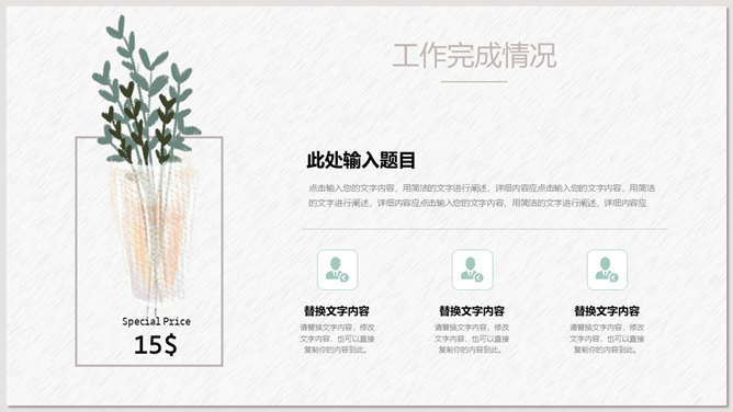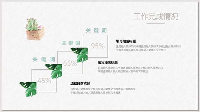 浓艳新鲜水彩绿植PPT模板。一套浓艳小新鲜幻灯片模板,绿色水彩多肉植物装饰,精约唯美,通用性强。