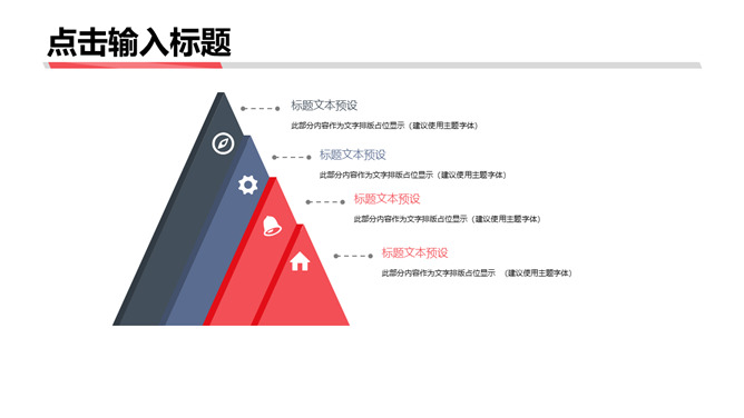 时尚精约动感通用PPT模板。一套精约大气通用幻灯片模板,经典赤色和灰蓝配色,时尚动感几何形状装修。