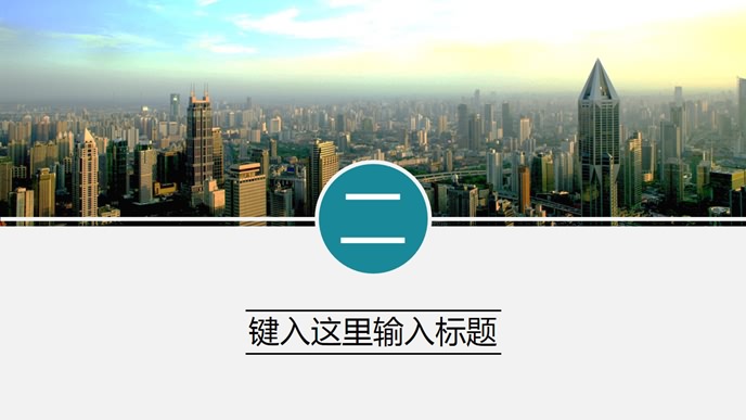 一份精美时髦的商务风格多功能幻灯片模板,以城市楼群前景图片为背景,全图型设计,时髦大气,共18页,目录页、过渡页、时间轴、图文说明等各类页面完全丰厚,可用于商务陈述、工作总结报告等多种用处。