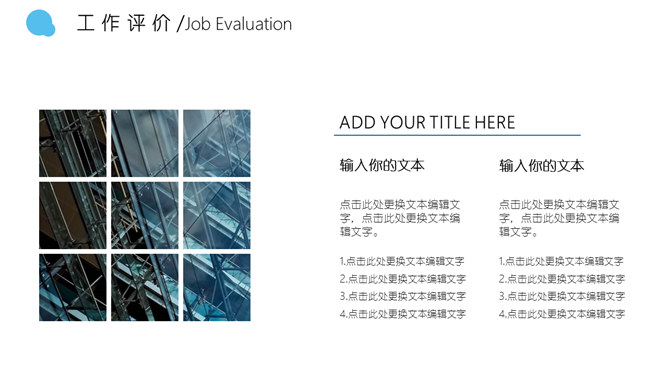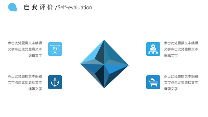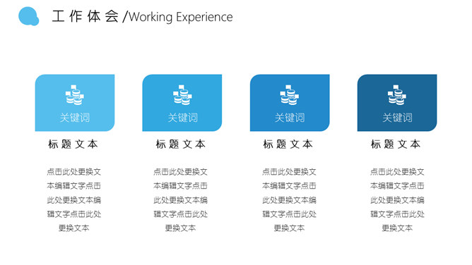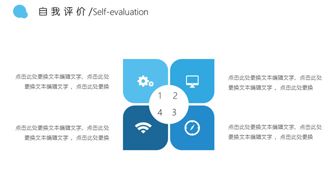 精约通用述职陈述PPT模板。一套职位岗位述职陈述幻灯片模板,清爽蓝色主色调,极简规划风格,通用性强。