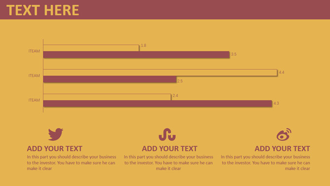一份十分精巧的商务PPT模板,选用一系列复古色彩配色,排版布局时尚,扁平化规划,好看的动态播放效果,强烈推荐。