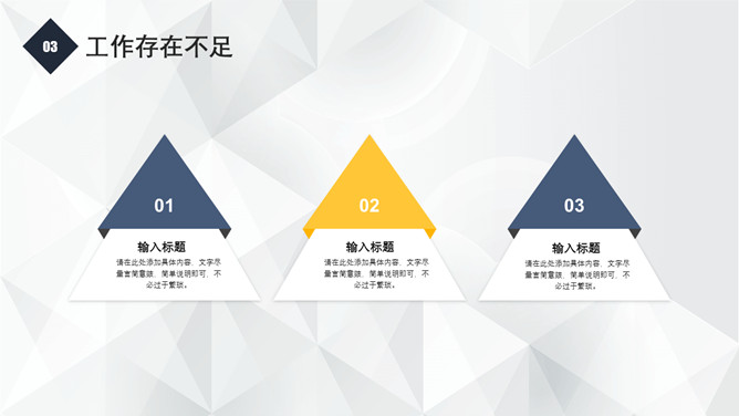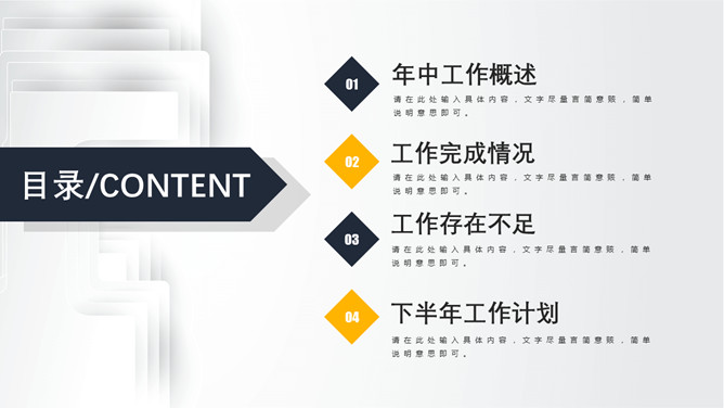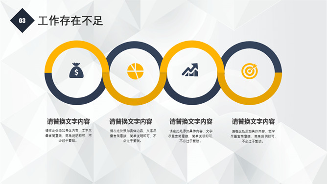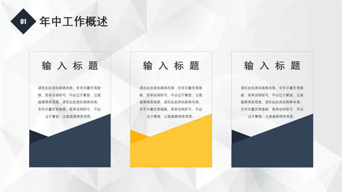 简练通用工作报告PPT模板。一套工作汇报总结报告幻灯片模板,立体作用背景,醒目蓝黄配色,精约大气通用。