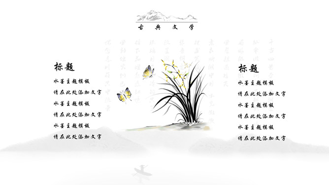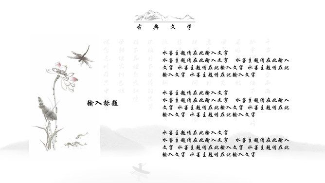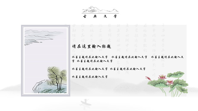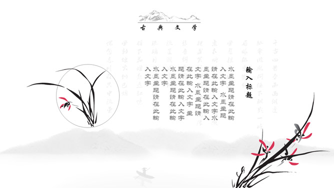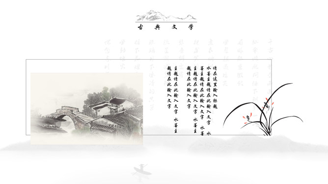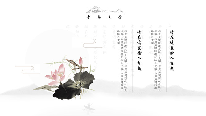 典雅唯美水墨中国风PPT模板。一套中国风幻灯片模板,荷花、兰花等花朵装饰,简约水墨设计,唯美典雅,动态播映。