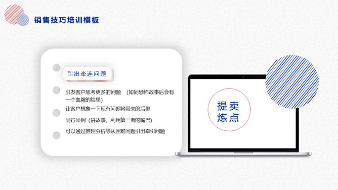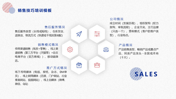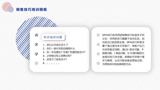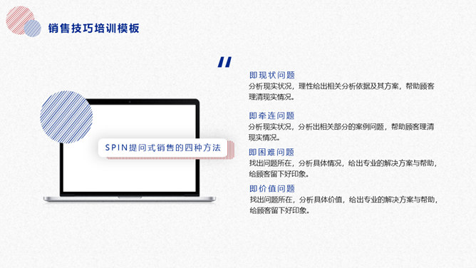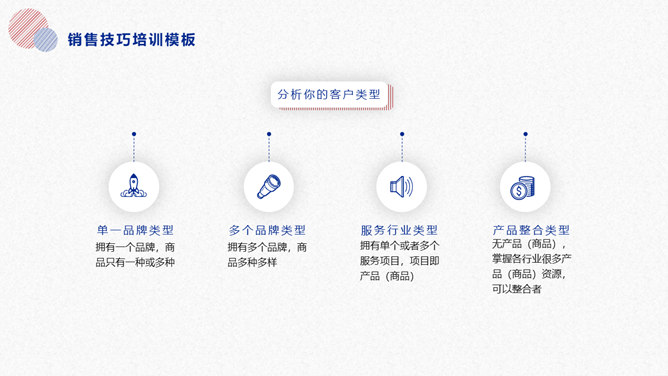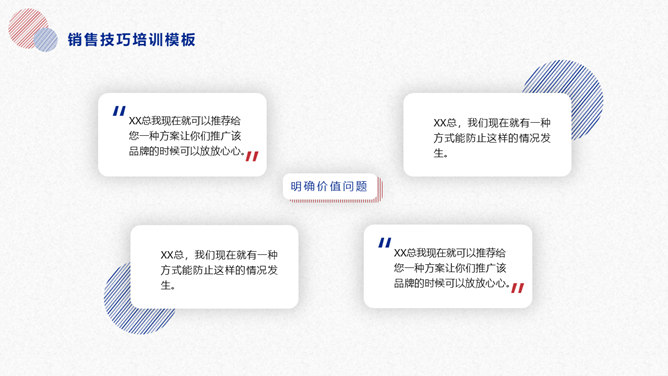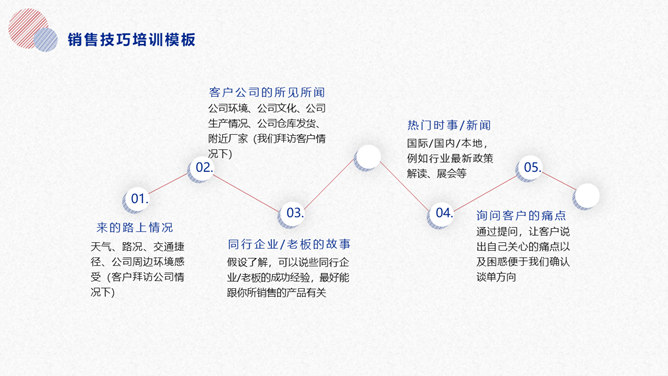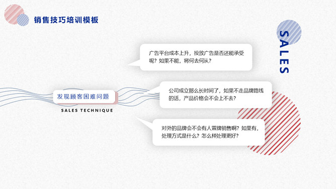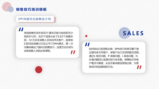 出售技巧话术培训PPT模板。一套出售技巧及话术培训课件模板,时髦红蓝配色,质感灰色背景,精约设计,内容实用。