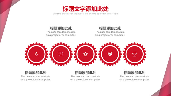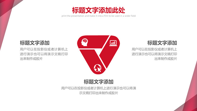 赤色几何图形通用PPT模板。一套多功能通用幻灯片模板,赤色低面几何图形背景装饰,页面丰厚有用。