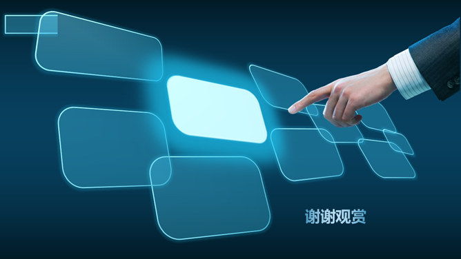 蓝色荧光作用科技感PPT模板。一份极具科技感的幻灯片模板,蓝色荧光作用设计,富丽动态作用,极致精约。