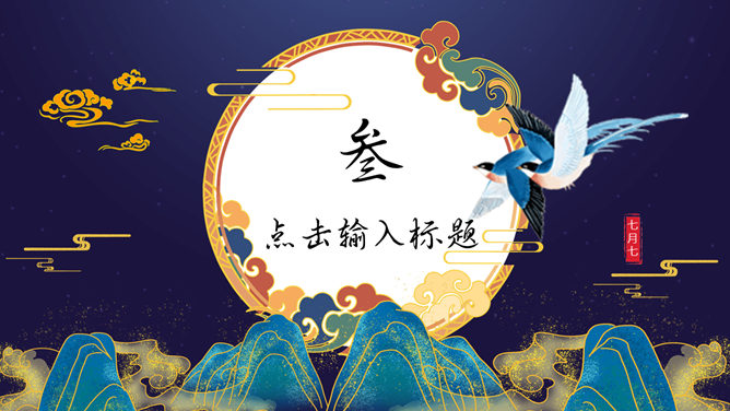 国潮风七夕节主题PPT模板。一套精巧七夕节主题幻灯片模板,我国元素规划,时髦国潮风格,动态播放效果。