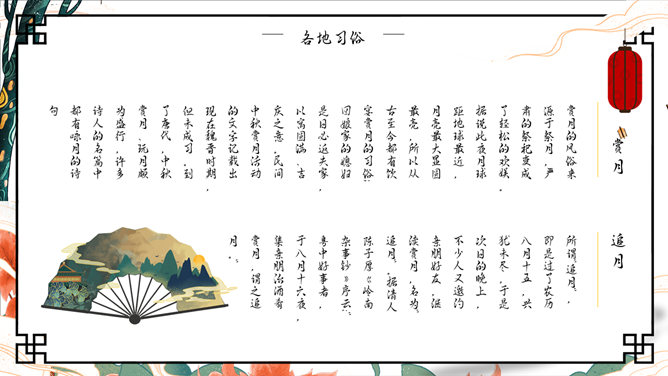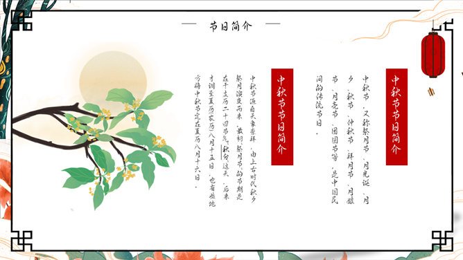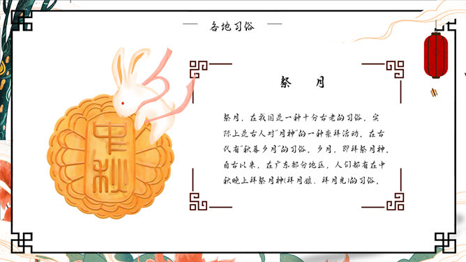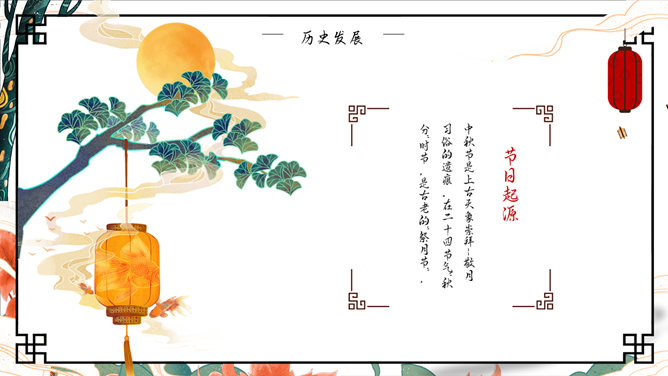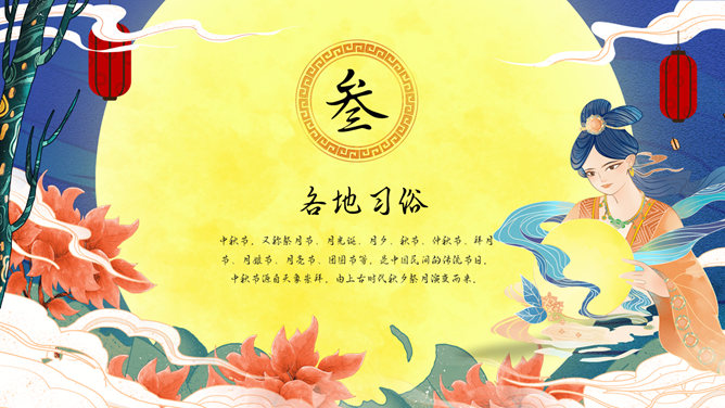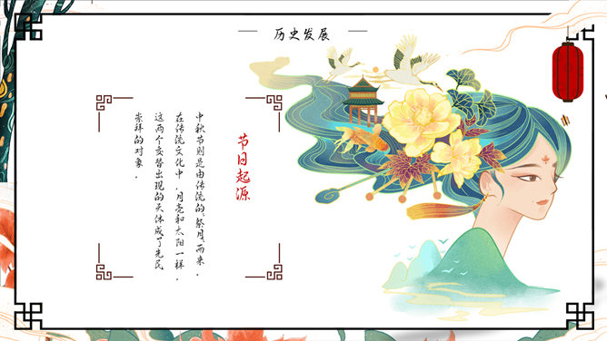 嫦娥奔月国潮风中秋节PPT模板。一套精巧中秋节幻灯片模板,时尚国潮风设计,嫦娥奔月主题设计,动态播映作用。