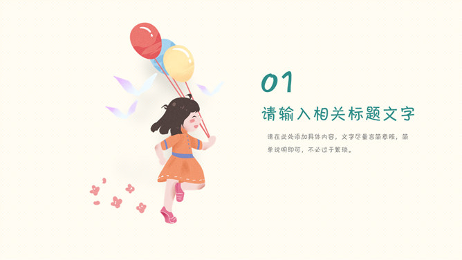 心爱手绘儿童节班会PPT模板。一套六一儿童节主题班会幻灯片模板,清新简洁,心爱卡通手绘规划风格。