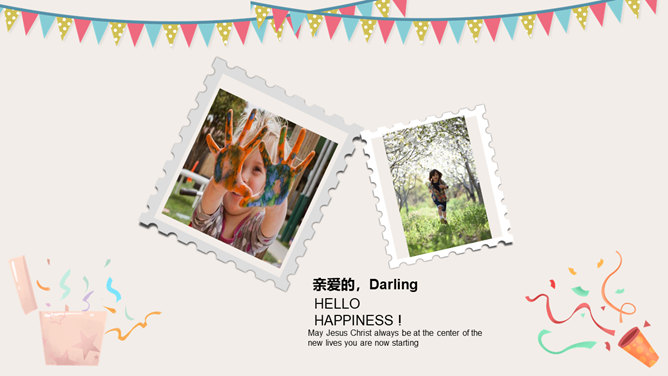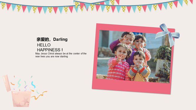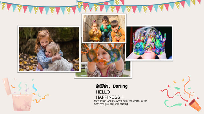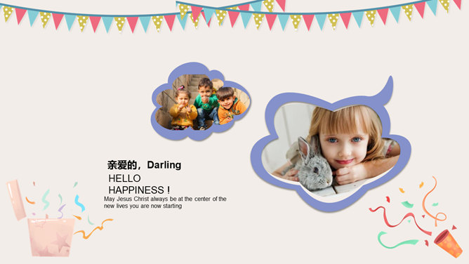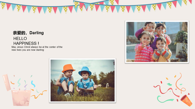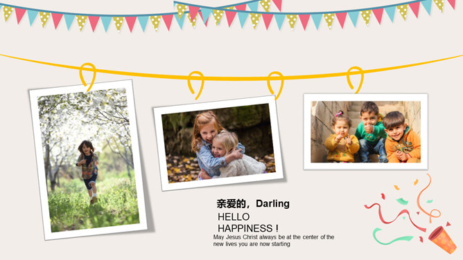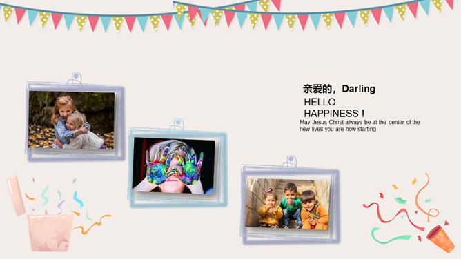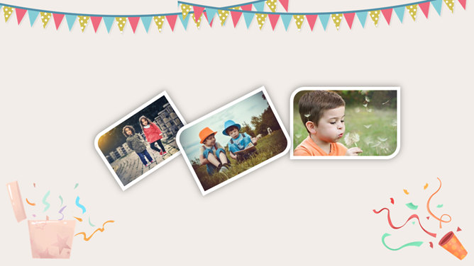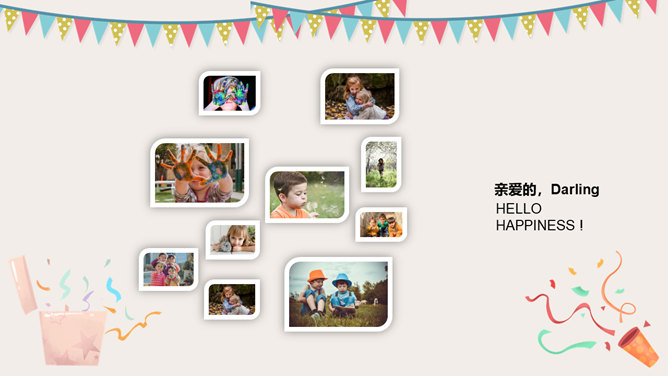 庆祝生日周岁相册PPT模板。一套庆祝生日的动态相片相册幻灯片模板,多种图片排版方式,直接替换图片即可。