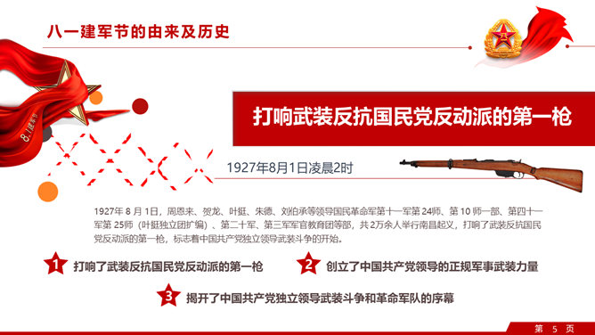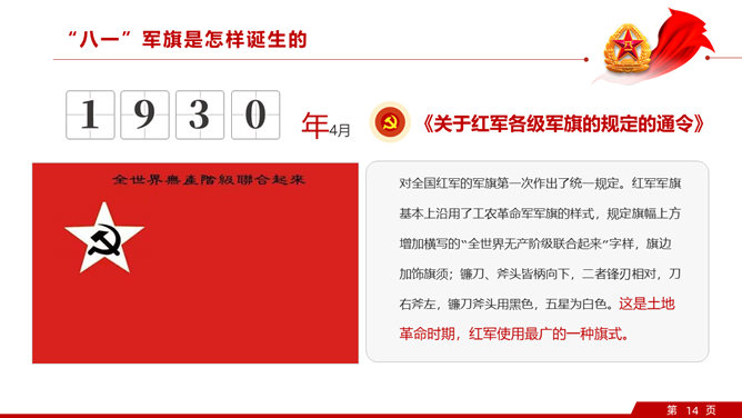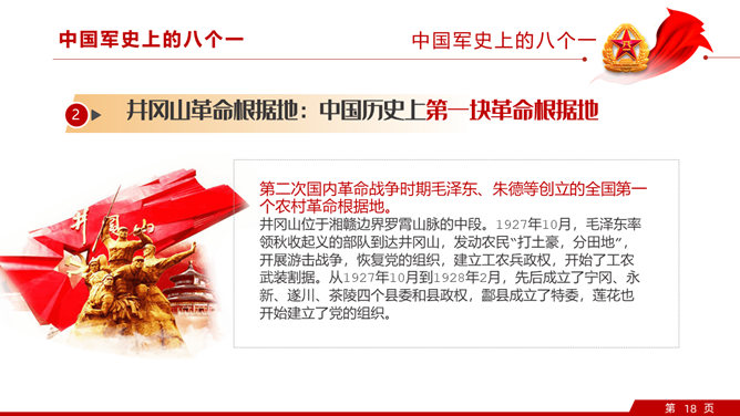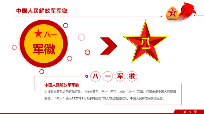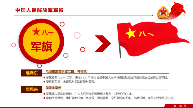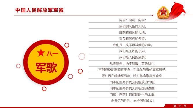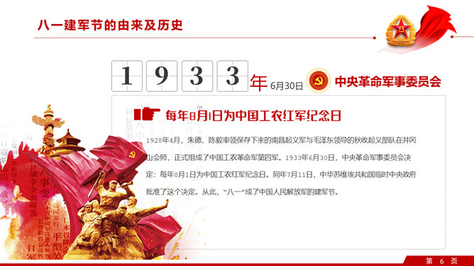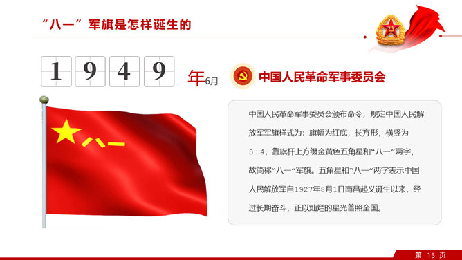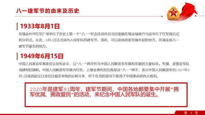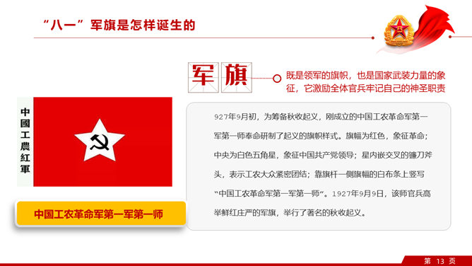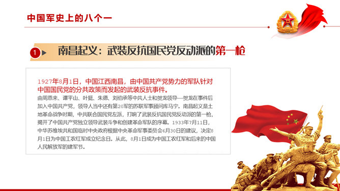 八一建军节军魂军史PPT模板。一套八一建军节主题幻灯片模板,相同适合解放军军史介绍解说课件运用。