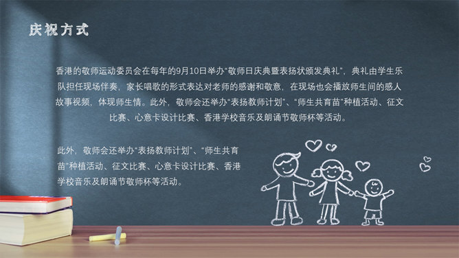 感恩师恩教师节PPT模板。一套教师节主题幻灯片模板,黑白粉笔字效果规划,适合庆祝教师节活动使用。