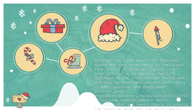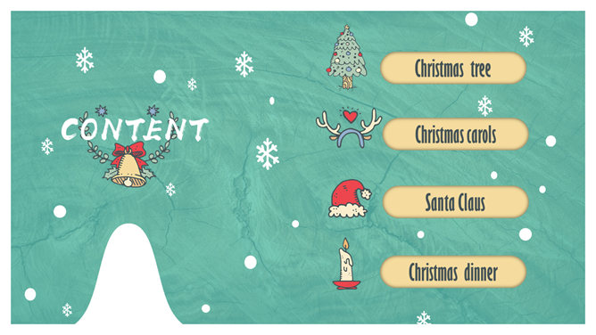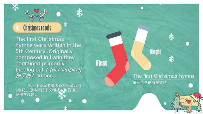 心爱卡通圣诞节PPT模板。一套圣诞节主题幻灯片模板,心爱卡通设计风格,适合圣诞节由来、习俗介绍等用途。