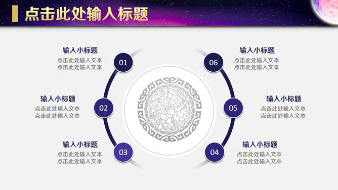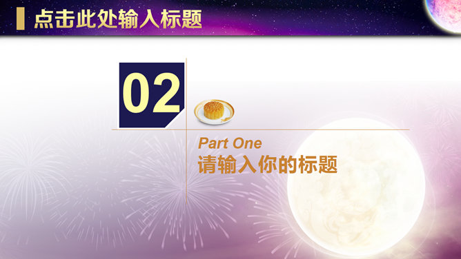 月亮明月庆祝中秋节PPT模板。一套中秋节主题幻灯片模板,封面页以大大的月亮图片为背景。主张装置字体:方正正中黑简体,以达最佳显示作用。