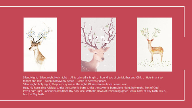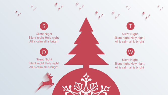 精约长暗影驯鹿圣诞节PPT模板。一套圣诞节主题幻灯片模板,以驯鹿为主要元素规划,精约扁平化长暗影规划风格。