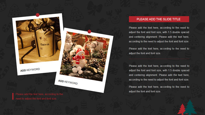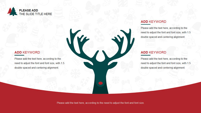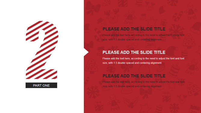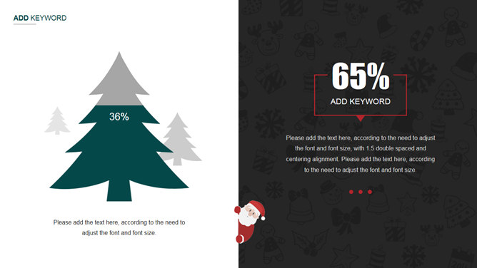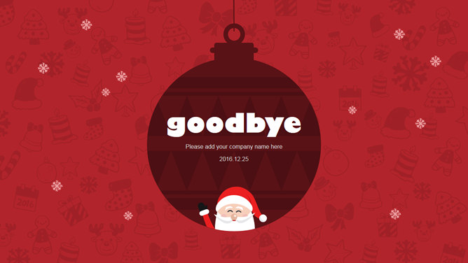 卡通扁平化圣诞节PPT模板。圣诞节主题幻灯片模板,喜庆红色主色调,扁平化设计风格,卡通圣诞老人等圣诞元素。