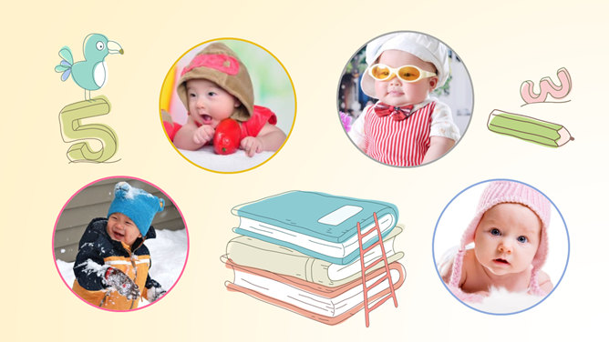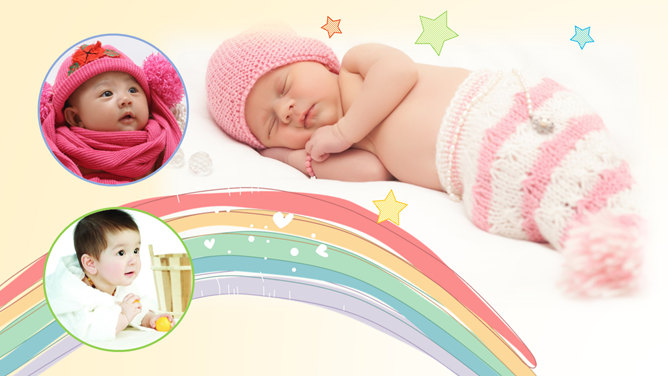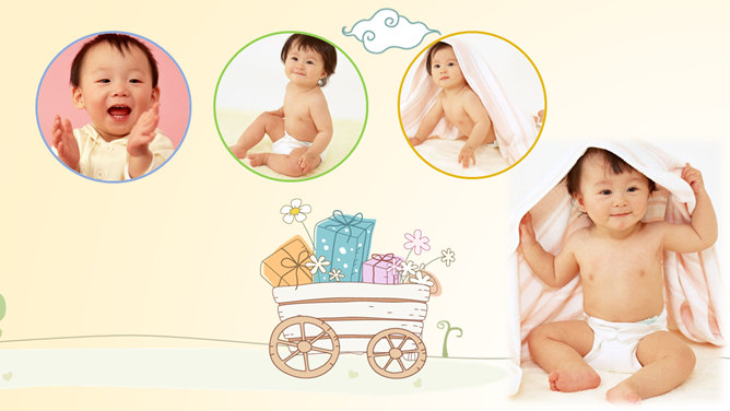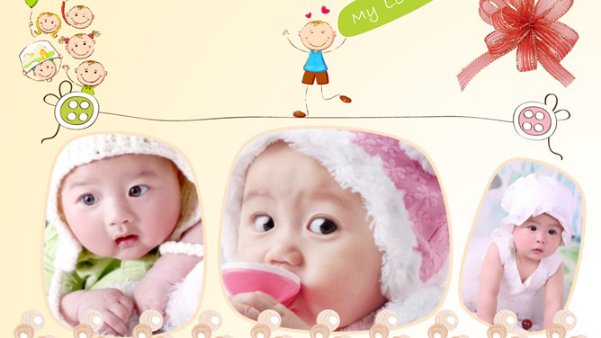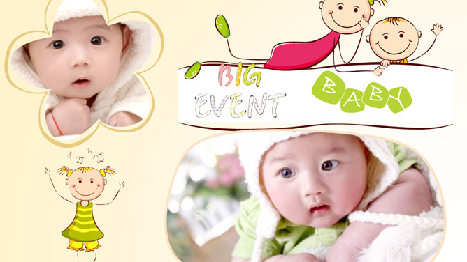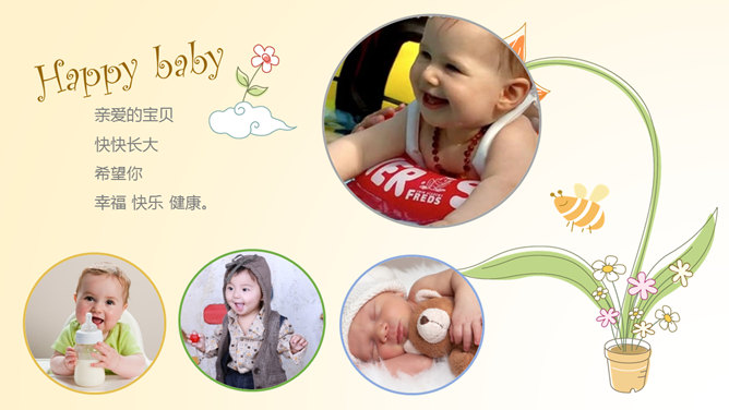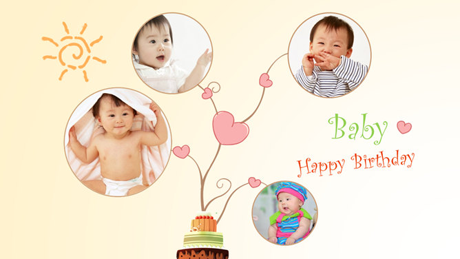 生日快乐儿童电子相册PPT模板。一套婴幼儿电子相片相册幻灯片模板,用于给孩子庆祝生日,记录生长。