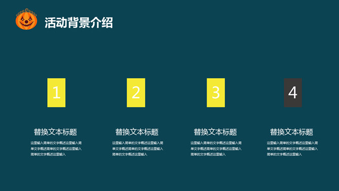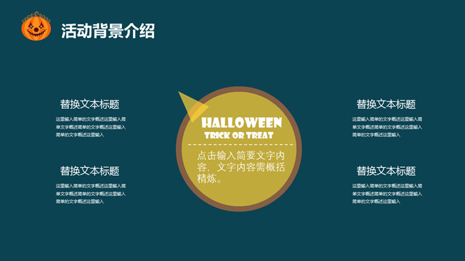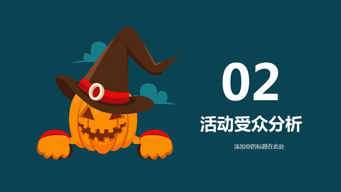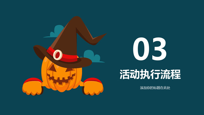万圣节活动策划PPT模板。一套万圣节主题幻灯片模板,可爱卡通设计风格,可用于万圣节活动策划或介绍等用处。