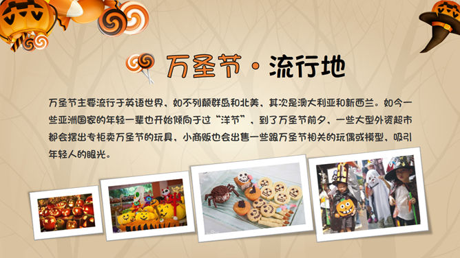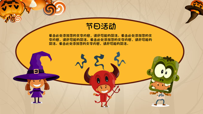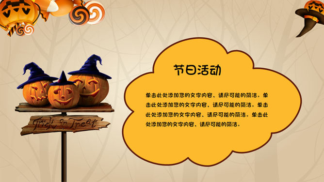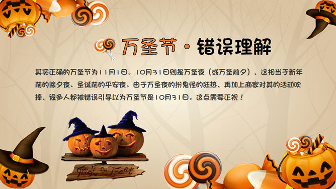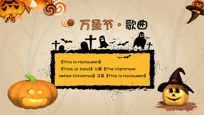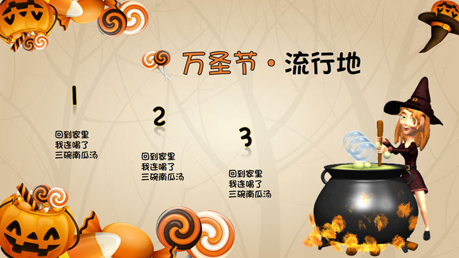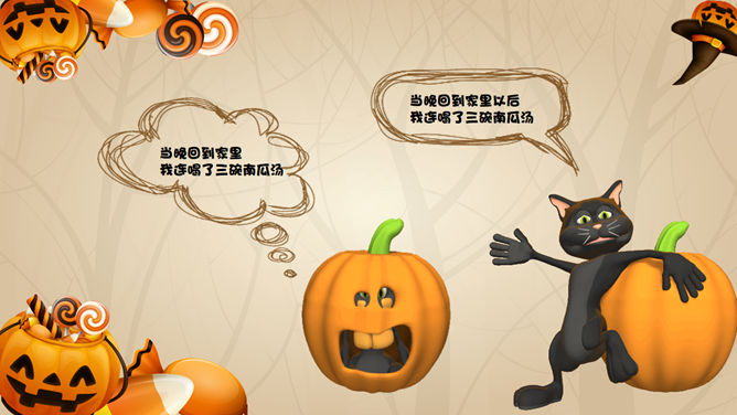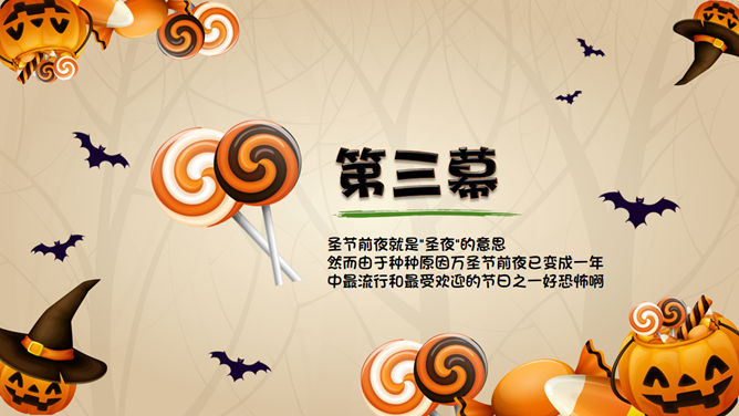 精巧动态万圣节主题PPT模板。一套精巧卡通万圣节主题幻灯片模板,好看的动态效果。安装字体:华康方圆体W7。
