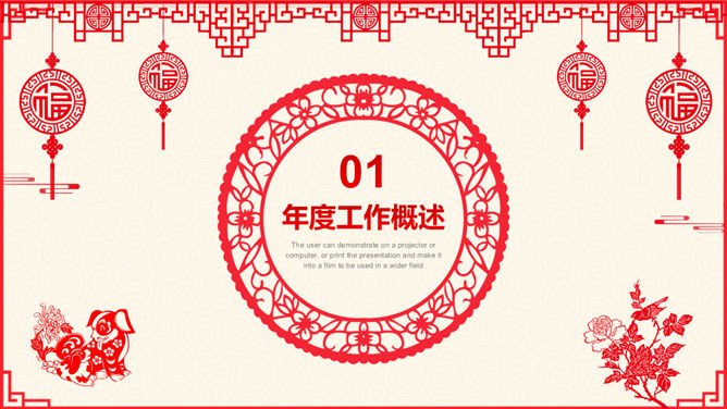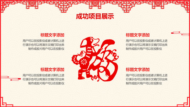 红色喜庆剪纸风狗年PPT模板。一套精美2018年狗年新年主题幻灯片模板,喜庆大红色剪纸设计风格。