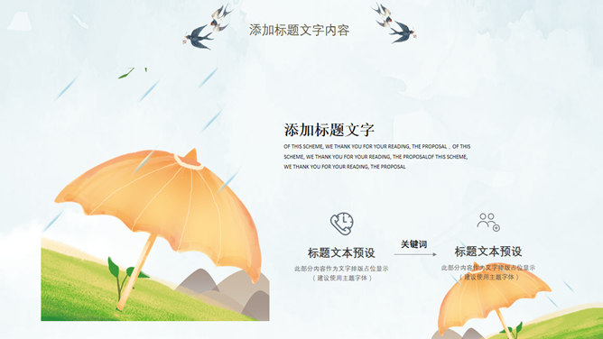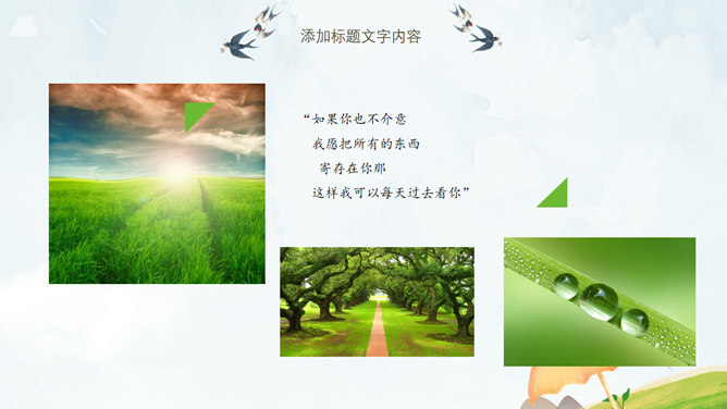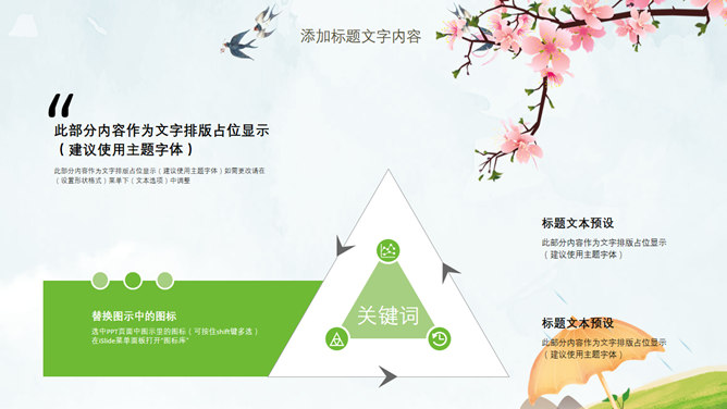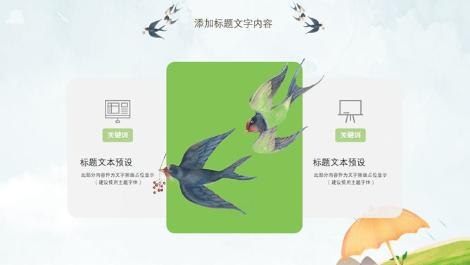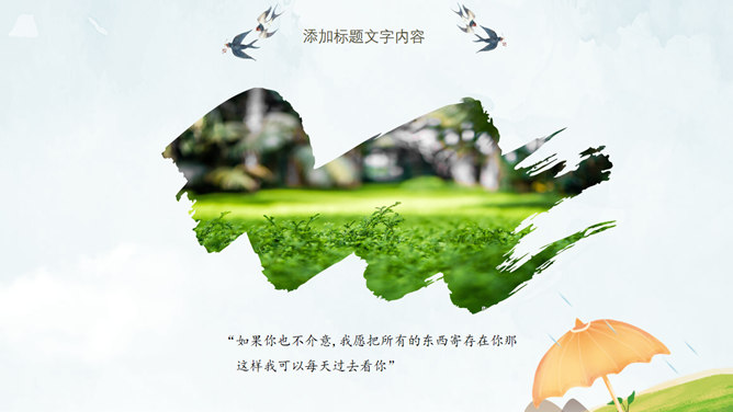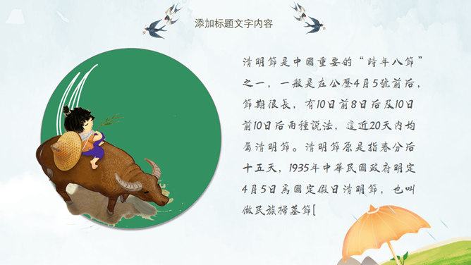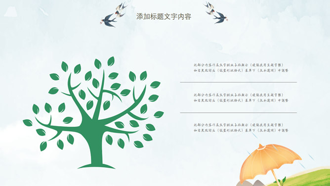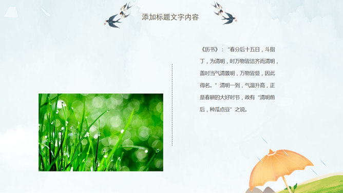 春天桃花燕子清明节PPT模板。一套清明节主题幻灯片模板,春天桃花燕子图片背景,清新唯美风格。