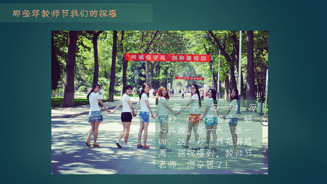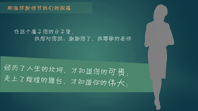 感恩教师节祝愿语PPT模板。一份图文排版的教师节主题幻灯片模板,用于教师节表达对老师的感恩和祝愿。建议装置字体:汉仪丫丫体简。