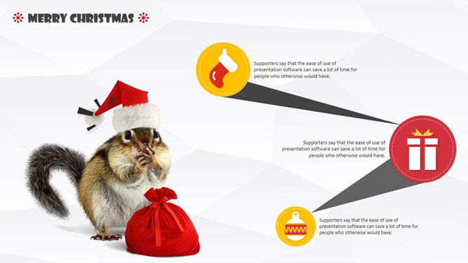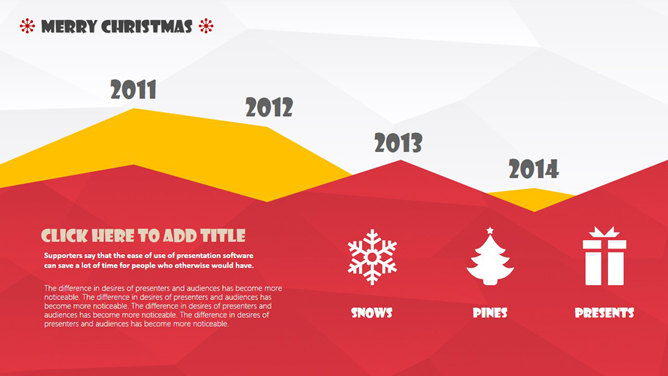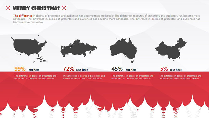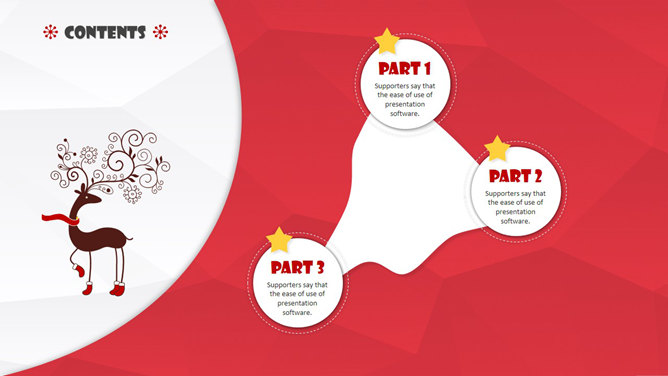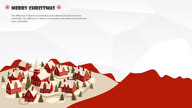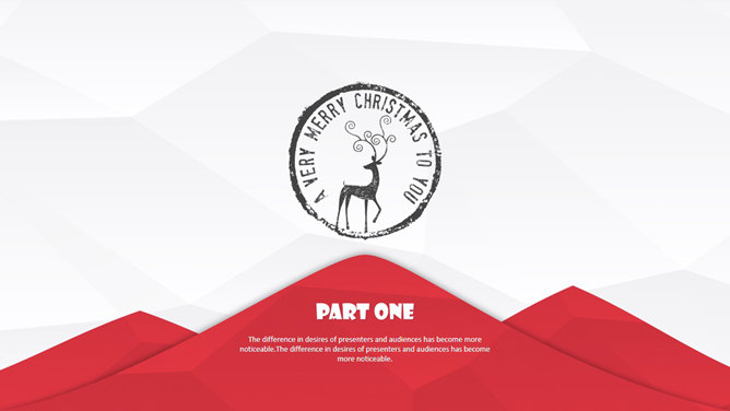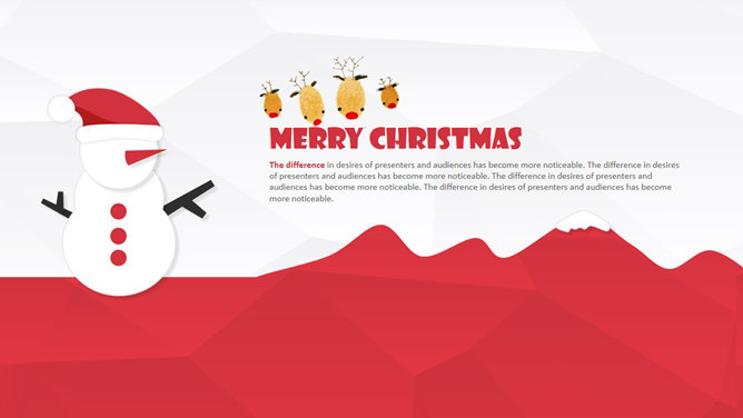 时尚好看的圣诞节主题PPT模板。一份精品圣诞节主题幻灯片模板低多边形布景,喜庆红色主色调,扁平化规划风格。主张安装字体:Showcard Gothic。