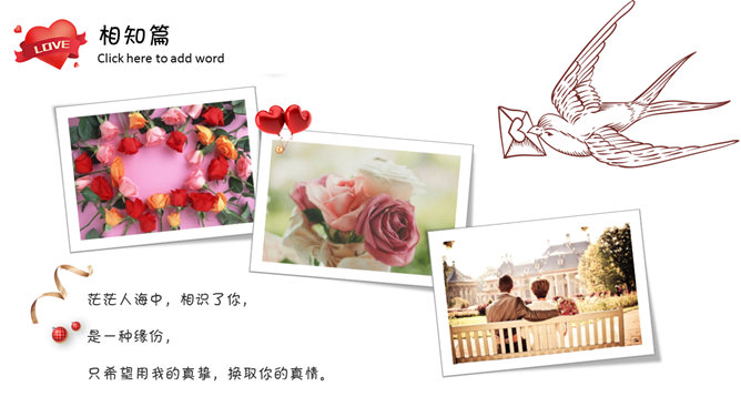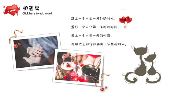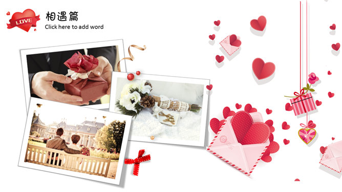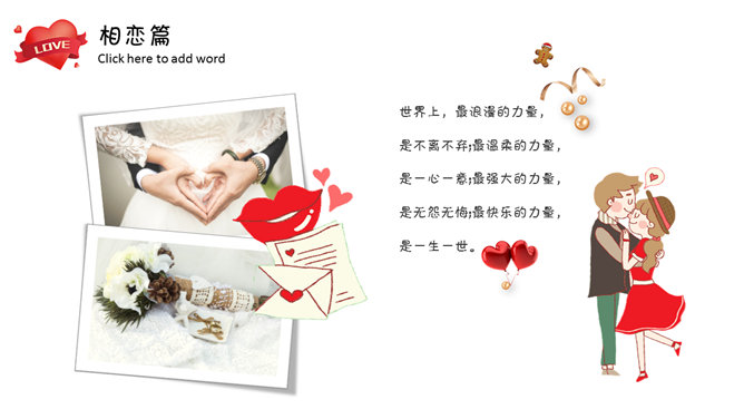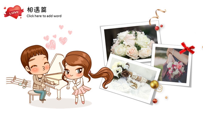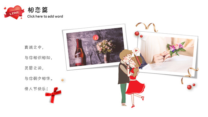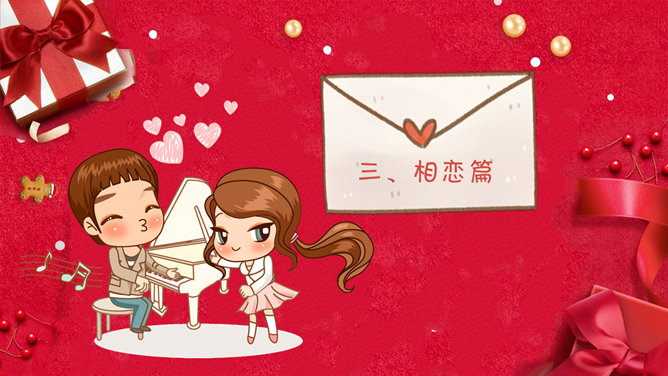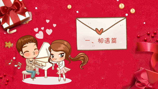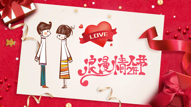 心爱卡通浪漫情人节PPT模板。一套精美情人节电子相片相册幻灯片模板,心爱卡通设计风格,动态播映作用。