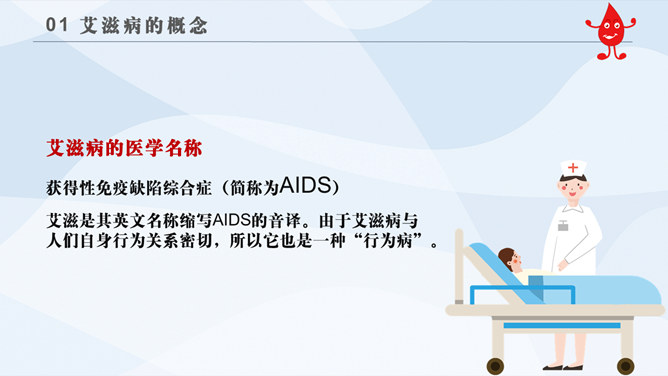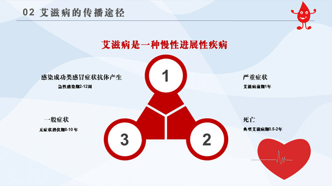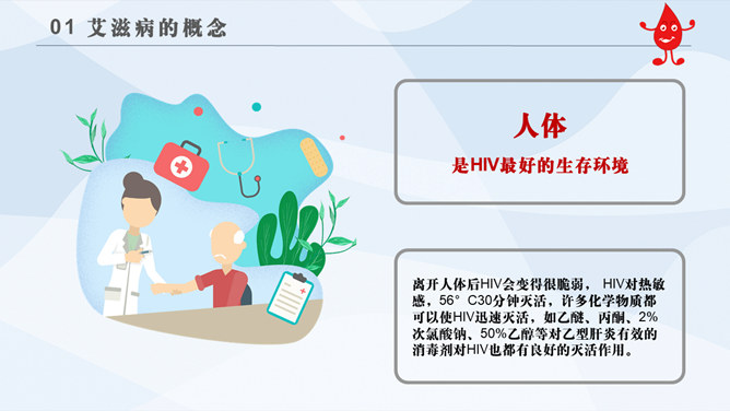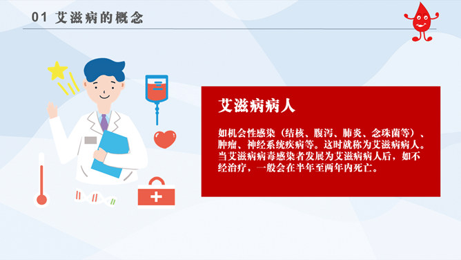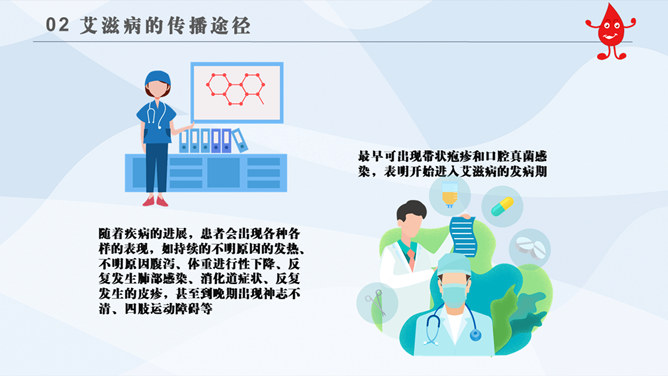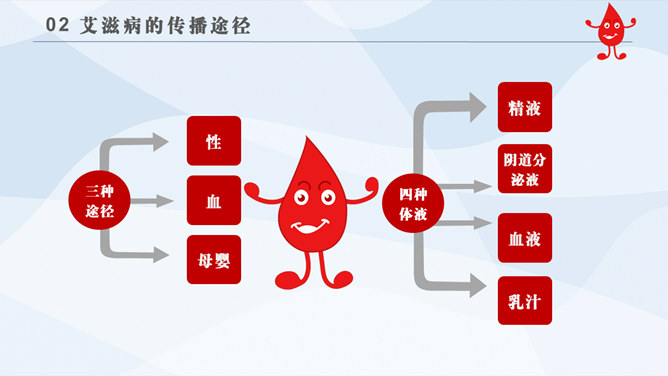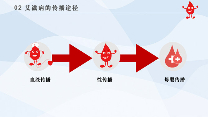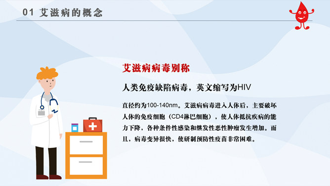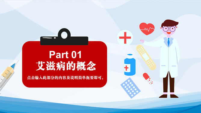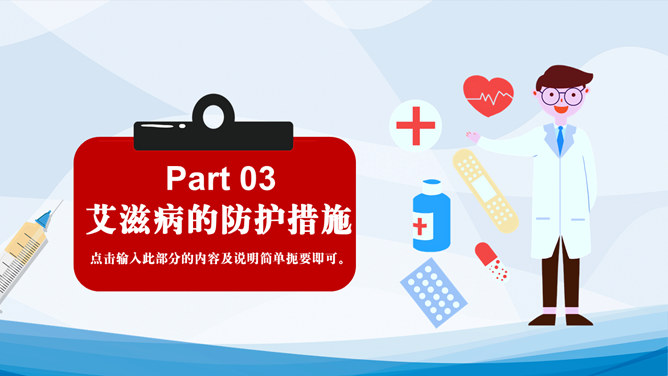 国际艾滋病日PPT模板。一套国际艾滋病日主题幻灯片模板,艾滋病的概念和传达途径,艾滋病的防护办法和灭活途径。