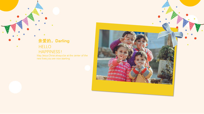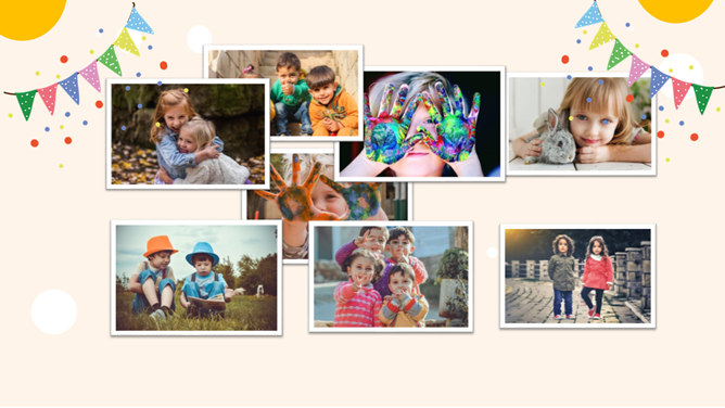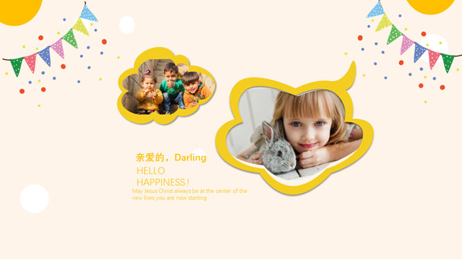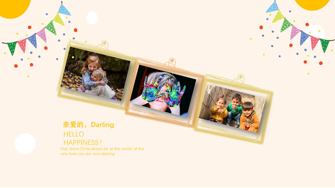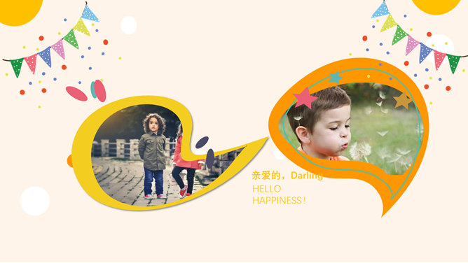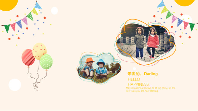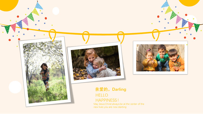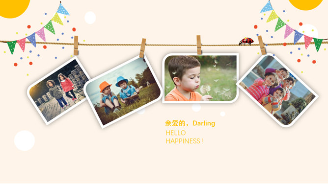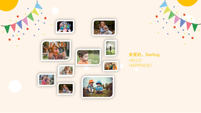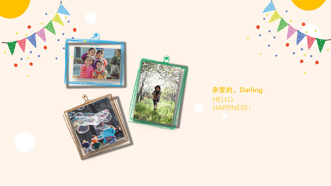 儿童生日快乐相册PPT模板。一套生日快乐相片相册幻灯片模板,心爱卡通规划风格,合适庆祝生日使用。