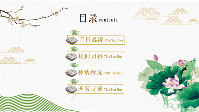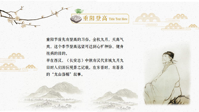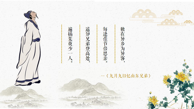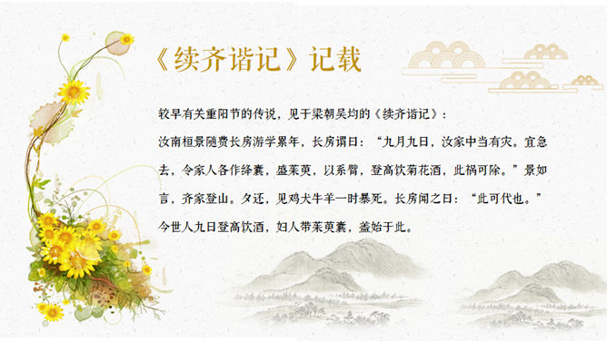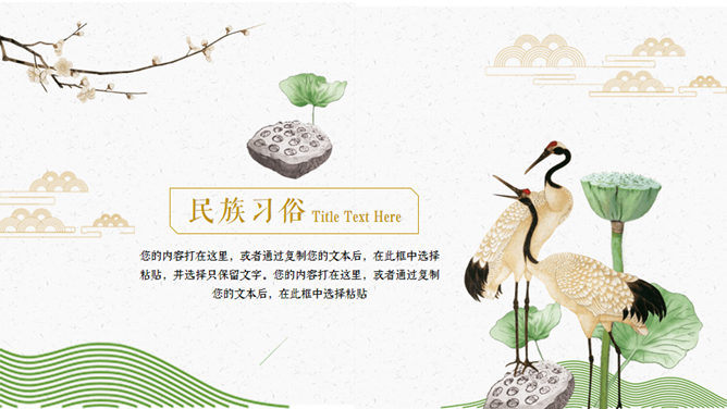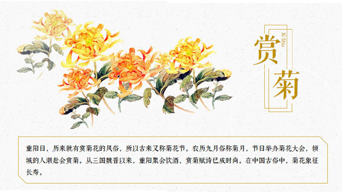 仙鹤荷花中国风重阳节PPT模板。一套传统节日重阳节主题幻灯片模板,仙鹤、荷花、菊花装修,中国风设计风格。