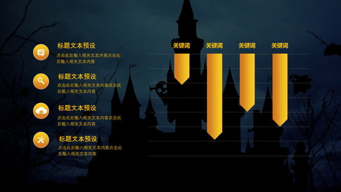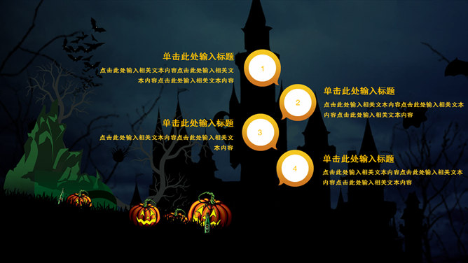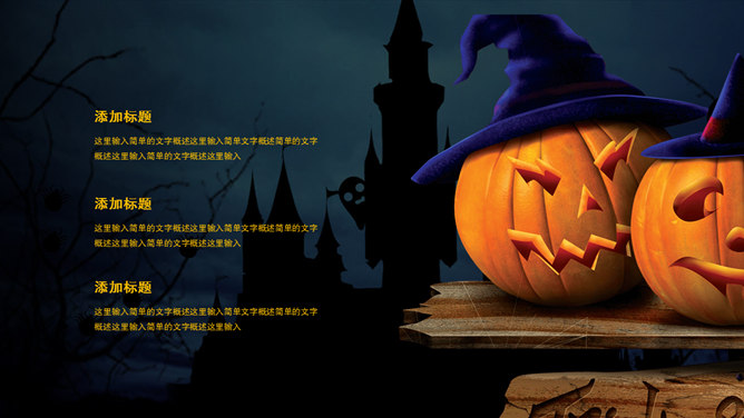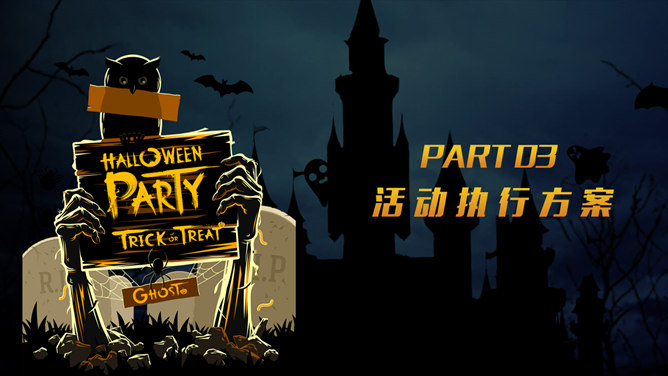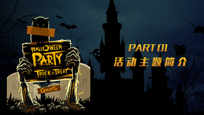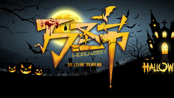 恐惧万圣节活动策划PPT模板。一套万圣节活动策划计划幻灯片模板。建议装置字体:造字工房力黑(非商用)惯例体。