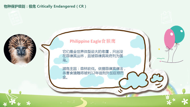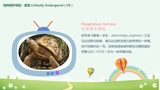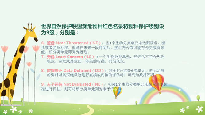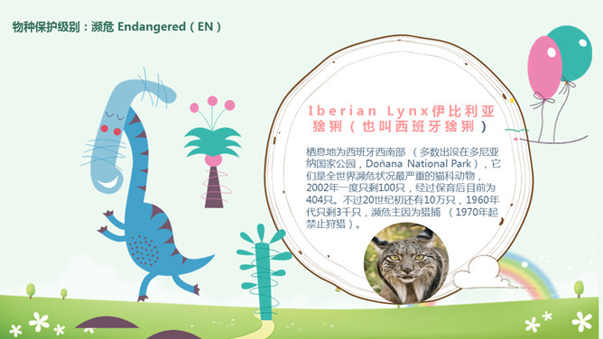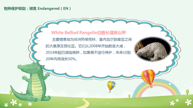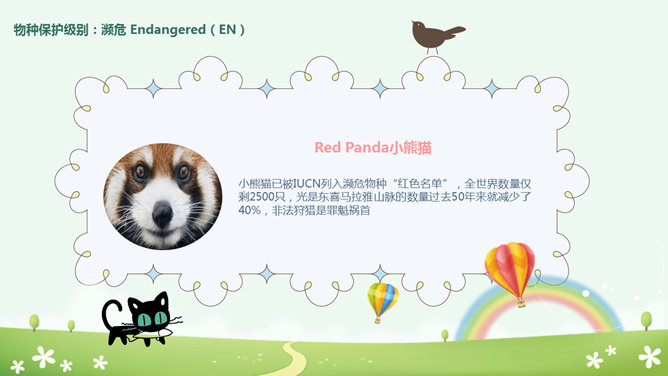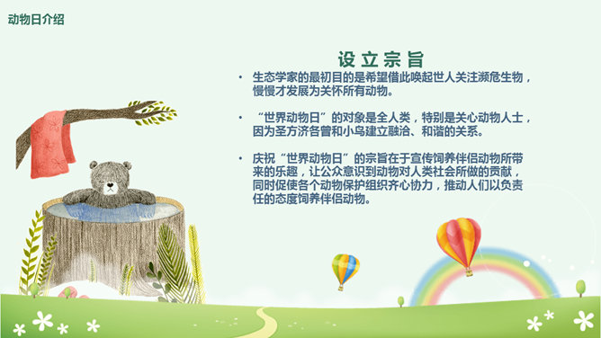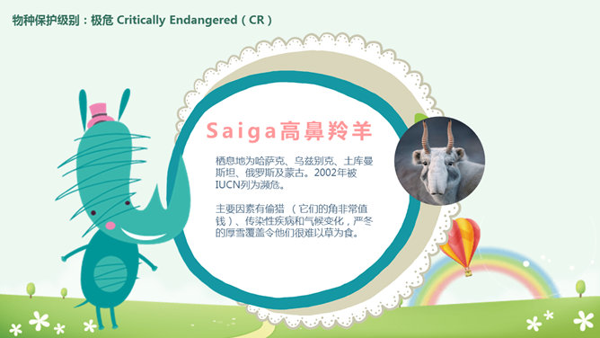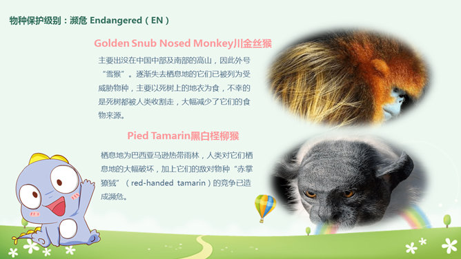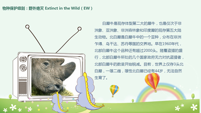 卡通国际动物日介绍PPT模板。一套介绍国际动物日的幻灯片模板,介绍了国际上濒临灭绝的29种珍稀动物和如何维护。