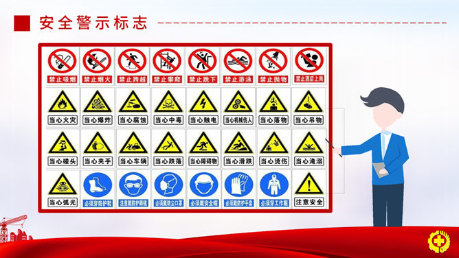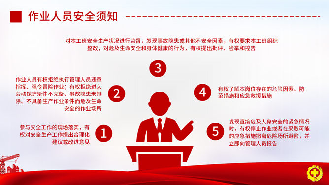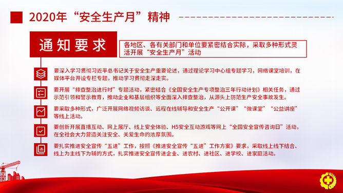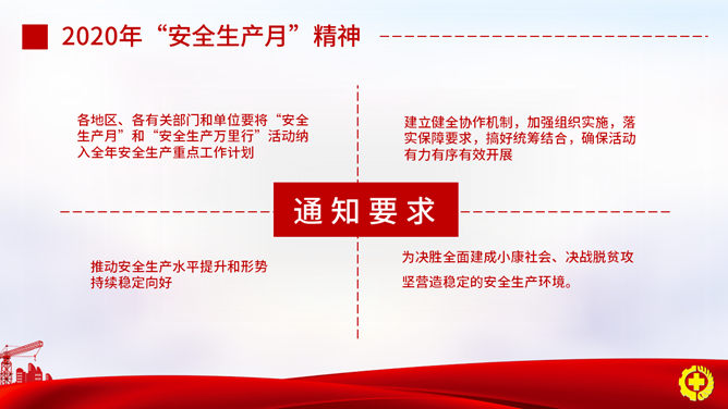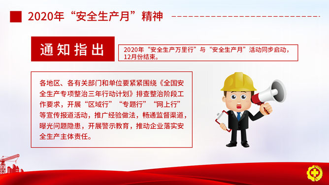 安全出产月安全知识PPT模板。一套安全出产月活动主题幻灯片模板,适合安全出产知识及法律法规教育训练。