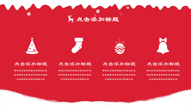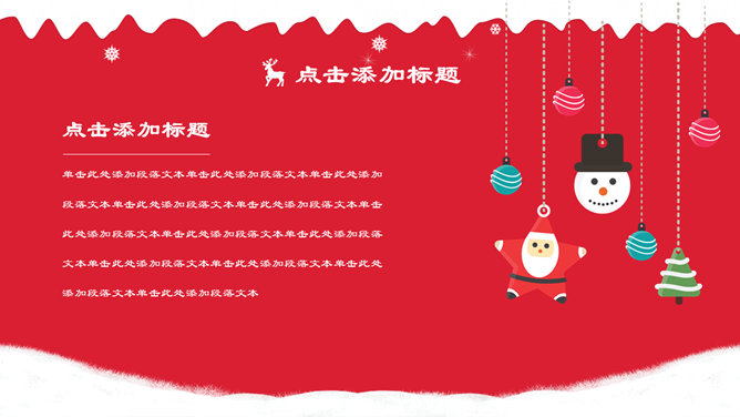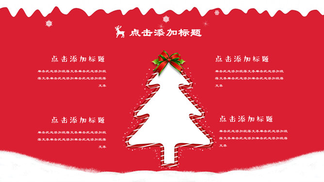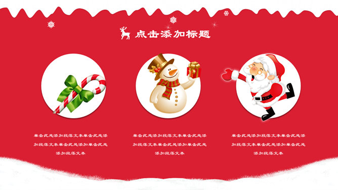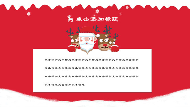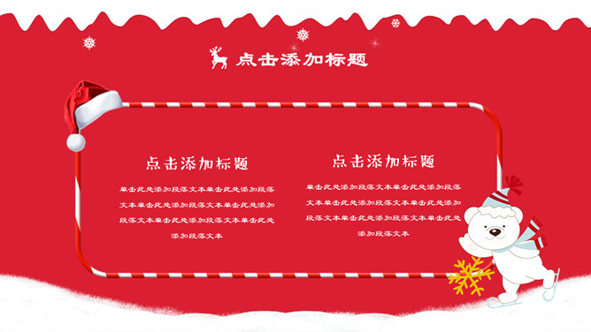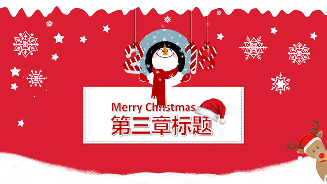 可爱卡通圣诞节快乐PPT模板。一套圣诞节主题幻灯片模板,喜庆大红色布景,雪人、小鹿、小红帽等圣诞元素规划。