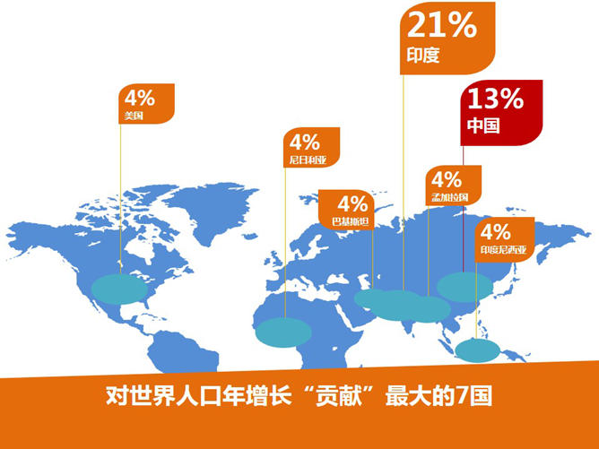 一份7月11日国际人口日主题的PPT,合适国际人口日宣传活动运用。目前国际人口现已打破70亿,而且每年添加7700万,联合国预测到2050年,国际总人口将达92亿,在我国人口老龄化问题和男女比例失衡问题也日趋严峻。