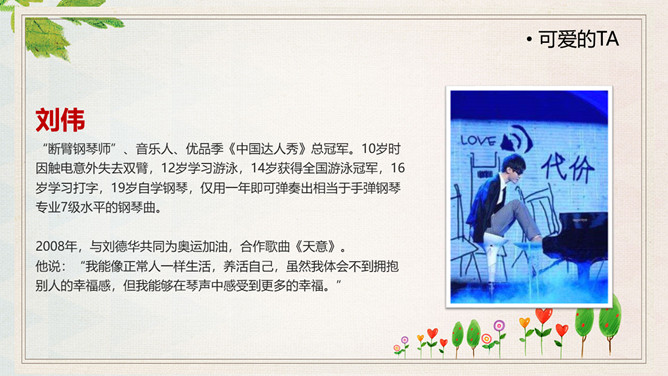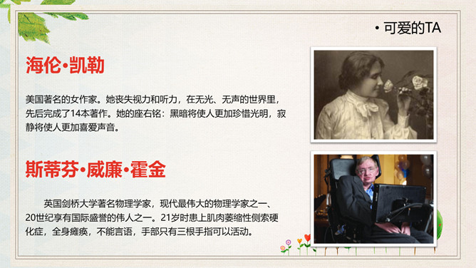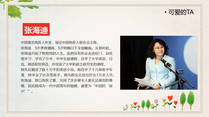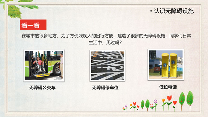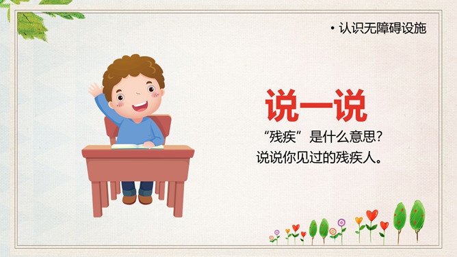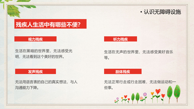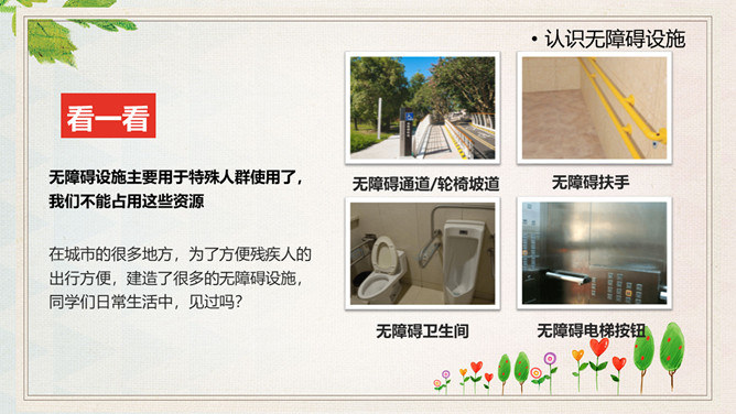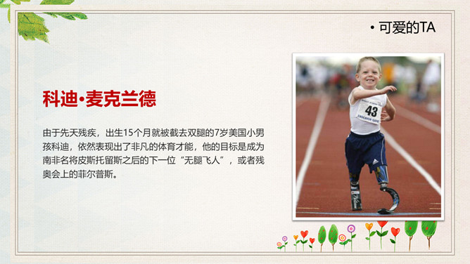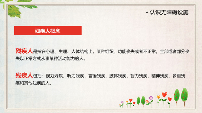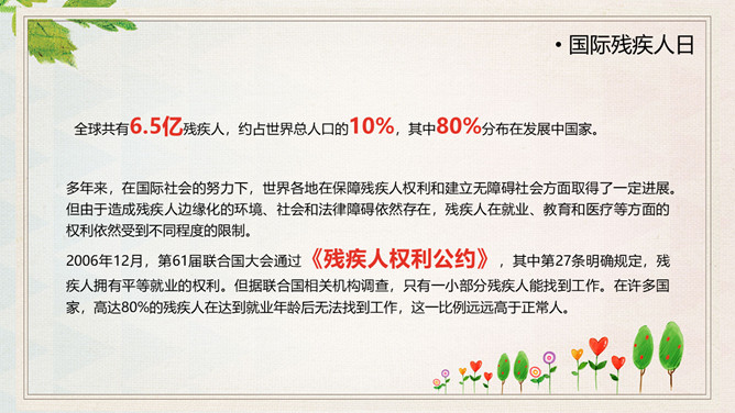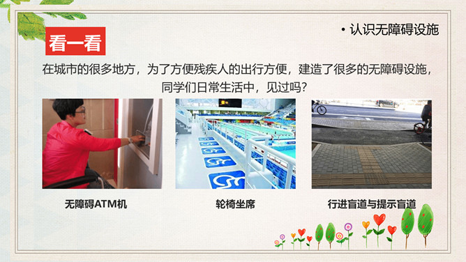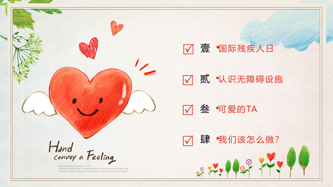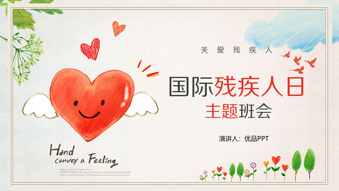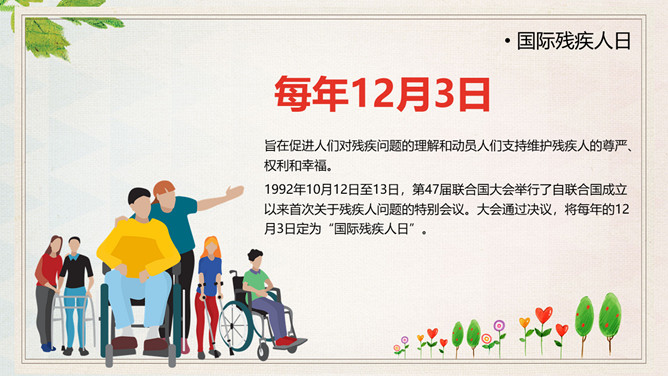 国际残疾人日关爱残疾人PPT模板.包含国际残疾人日介绍、认识无障碍设备、心爱的TA、咱们该怎么做?等内容。